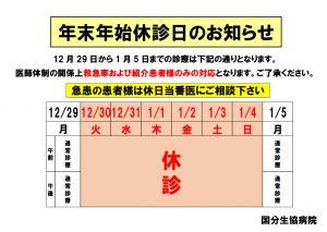 年末年始の外来診療に関するお知らせ